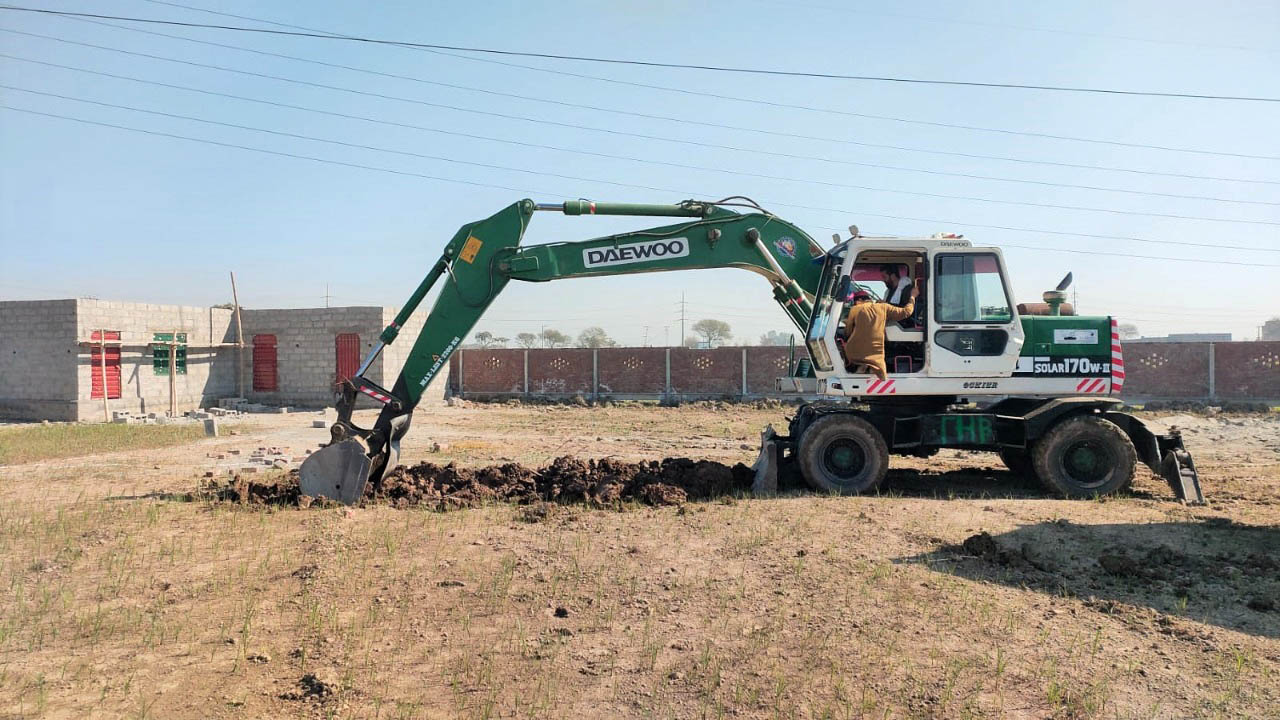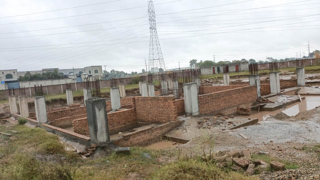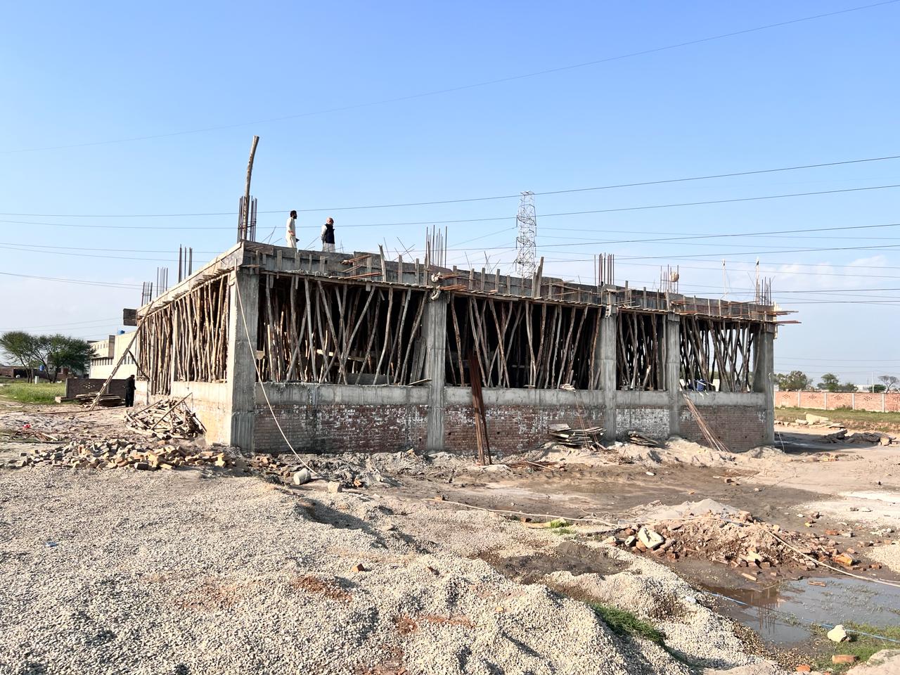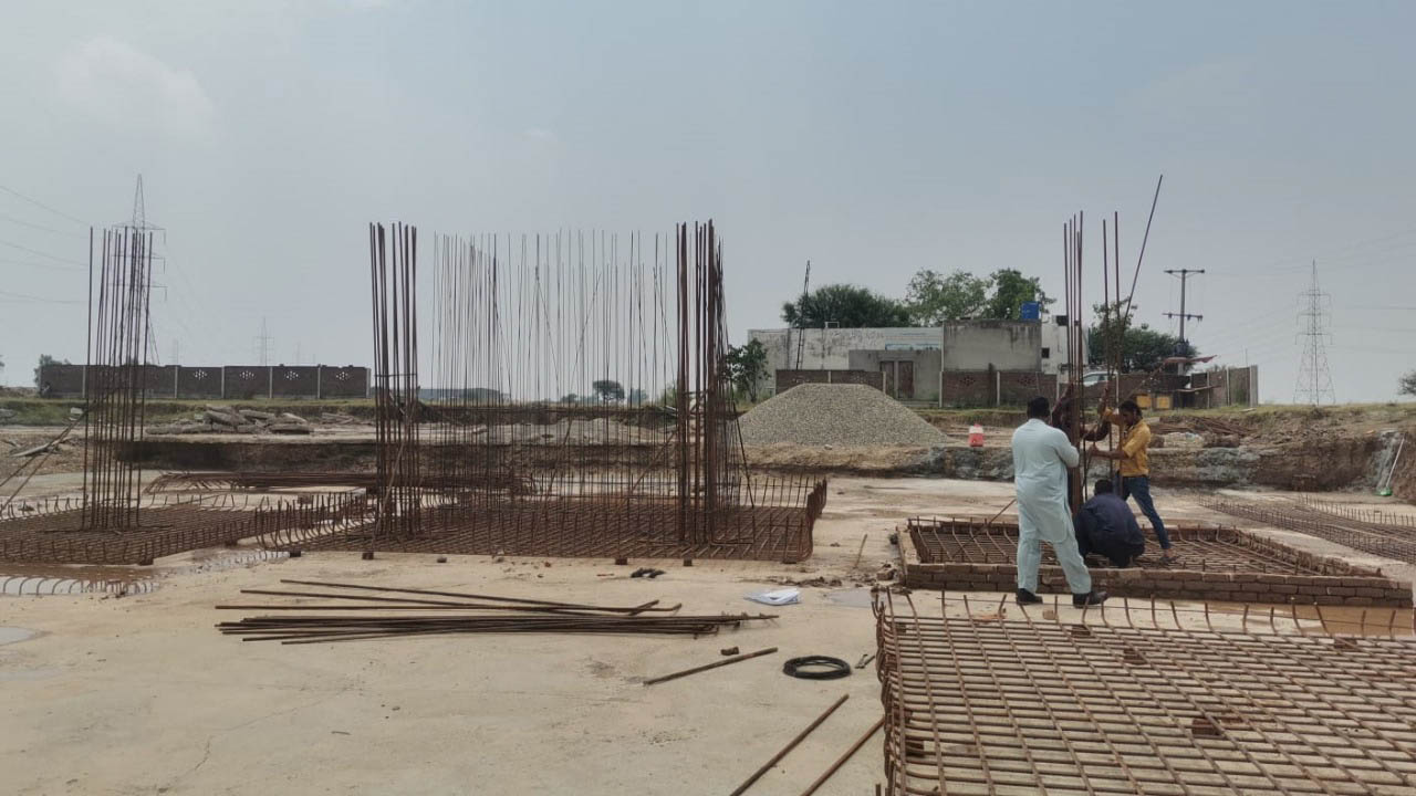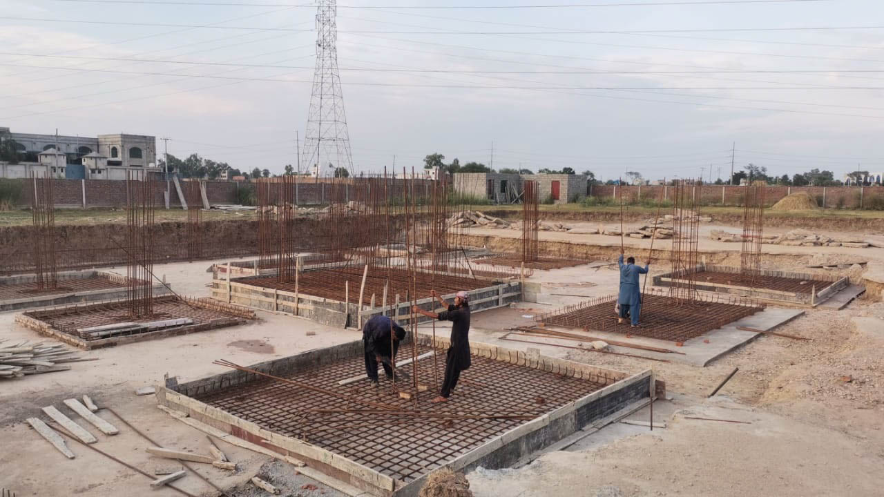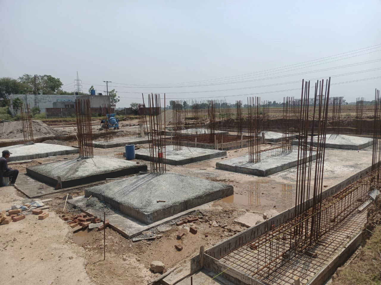 CSH hospital building foundation columns concreting in progress along with foundation masonry layout.